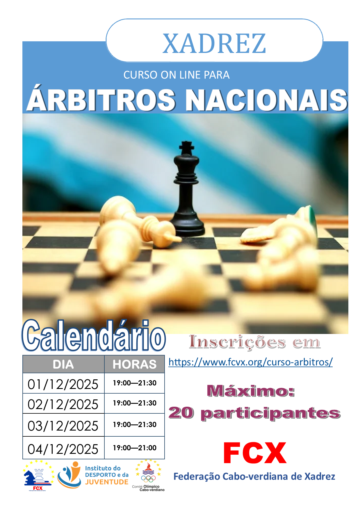 Esta formação representa uma oportunidade única para todos aqueles que desejam licenciar-se como Árbitros Nacionais e/ou aprofundar os seus conhecimentos e desempenhar um papel mais relevante no desenvolvimento do xadrez em Cabo Verde.